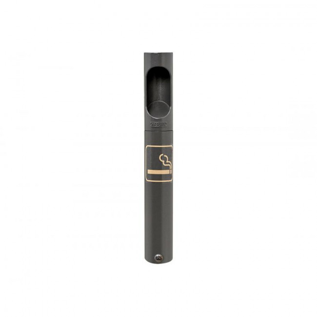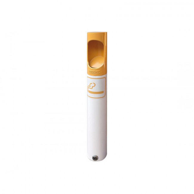 Contenance : 1500 mégots environ. Hauteur : 600 mm Acier ø 76 mm et tête en aluminium moulé Finition : peint sur galva « couleurs cigarette » ou monochrome Fixation : platine murale