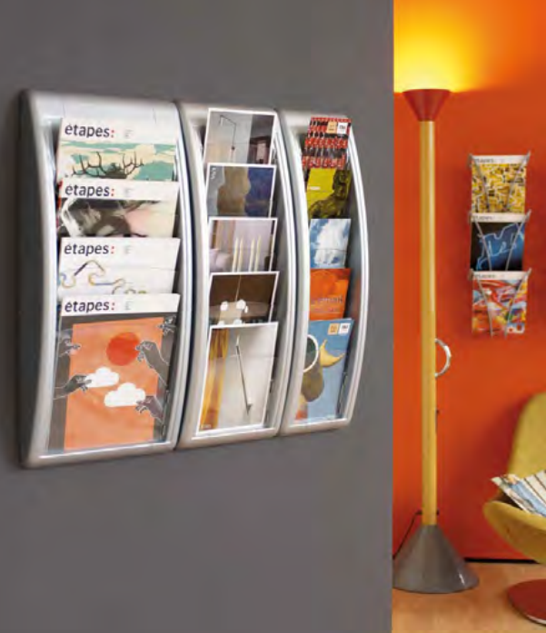 2 présentoirs: A4 , 2 présentoirs A5 et 2 présentoirs A6.