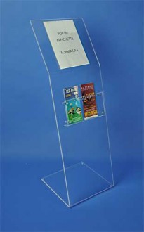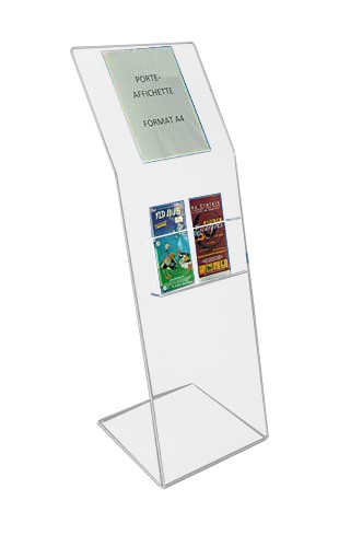 Présentoir brochure sur pied en plexiglas - Format 1/3 A4