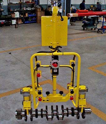 Dans le domaine de la mécanique, les applications développées sont nombreuses et d’une très grande variété. Ainsi, des manipulateurs assistent les manipulations en état d’apesanteur de lames de ressort, arbres de transmission, engrenages, tôles, réservoirs… L’outil de préhension est réalisé aux mesures de la pièce à manipuler et des opérations à effectuer sur le poste de travail. Les règles de l’art en matière d’ergonomie sont également intégrées à la conception du préhenseur. Il existe également une gamme standard de manipulateurs comme le montre la photo où deux manipulateurs, type PRC sur colonne et PVC sur colonne, équipés de crochet standard permettent la manipulation de composants de moteurs.