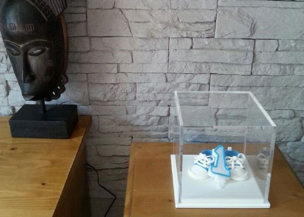 c"est un couvercle/cloche composée d"une bande de plexi arrondie, de 30cm de hauteur et d"une plaque de plexi découpée en cercle du même diamètre, posée dessus. la cloche se pose sur un tas de crepe qui est posé sur un plateau en bois rond. Elle permet d"empiler plusieurs couvercles les uns sur les autres puisque le "toit" est plat