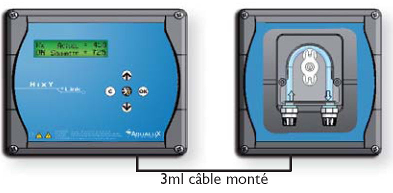 Avantages produit: > Adaptable : le montage libre ou associés des boîtiers (3ml câble fourni) permet de s'adapter à toutes les configurations de locaux techniques. > Communicante : grâce à la technologie .link!, votre pompe doseuse communique avec l'ensemble des applications .link de votre bassin (électrolyseur Lyseo, télécommande...) et optimise le fonctionnement des appareils entre eux. > Universelle : ses multiples fonctions intégrées assurent une performance optimale pour un confort accru des baigneurs tout en limitant la consommation de produit : - sécurité niveau bac produit. - contrôle débit. - indication du niveau d'usure de la sonde. - paramétrage du volume bassin. - sécurité injection : arrêt du traitement en cas de défaut sur le circuit d'injection. - forçage filtration : mise en marche de la pompe de filtration lorsque la pompe doseuse le demande, c'est l'analyse de votre eau qui guide le fonctionnement de la pompe de filtration. - stand by : temporise l'injection de produit 15 minutes après la mise en fonctionnement de la régulation. Chacune de ses fonctions peut être activée ou désactivée via les menus déroulants. > Efficace : sa régulation proportionnelle intégrée ralentit la vitesse d'injection à l'approche du point de consigne afin d'éviter les surdosages et les consommations excessives de produits. > Performante : grâce à son débit de 5l/h elle permet de traiter des bassins jusqu'à 220m3 en Chlore et 440m3 en pH. > Facile à paramétrer : l'accès aux fonctions et la phase d'étalonnage est intuitif et convivial grâce aux menus déroulants en français, anglais et espagnol. > Prête à monter, la pompe doseuse est précâblée (alimentation et liaison entre les 2 boîtiers).