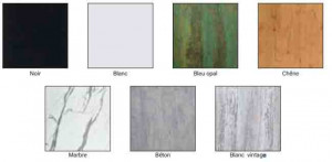 - 7 Finitions : Noir, Blanc, Bleu opal, Chêne, Marbre, Béton, Blanc vintage