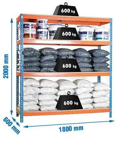 Avec ses dimensions de H.2000 x L.1800 x P.600 mm de profondeur, ce rayonnage atelier professionnel s'intègre dans vos espaces de travail.