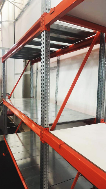 rayonnage semi lourd pour entrepot est idéal pour stocker vos charges volumineuses : caisses, palettes, matières premières etc...