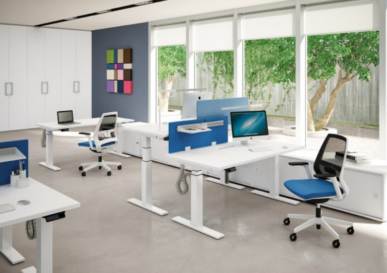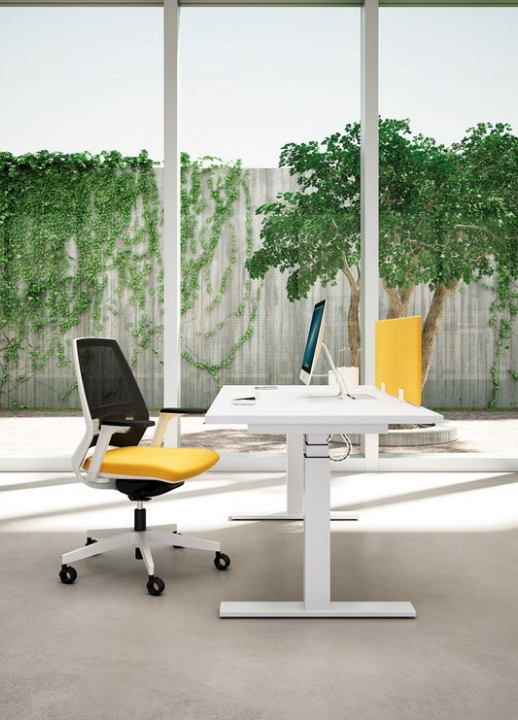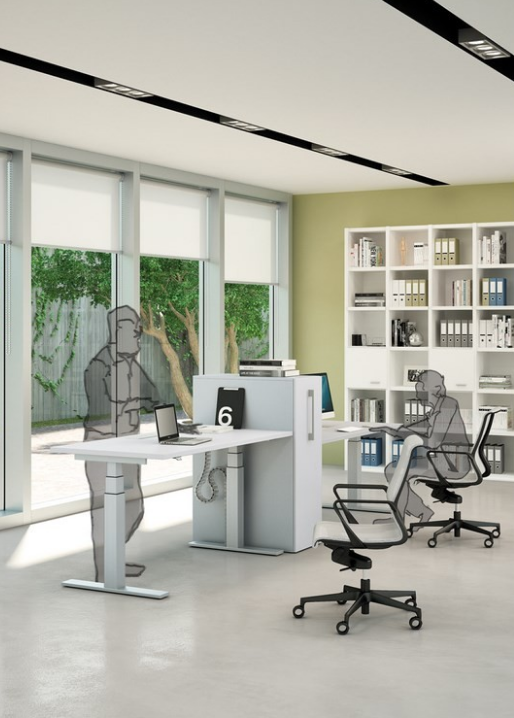Ce bureau moderne peut être ajusté selon le besoin de l’utilisateur : position assise ou debout.