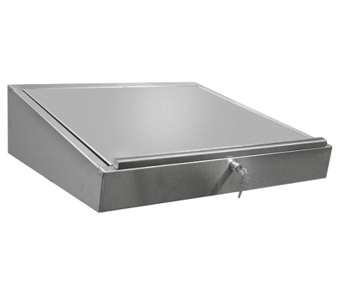 Réalisé en inox AISI 304L pour plus de résistance avec un couvercle doté d’une serrure incliné à 10° butées pour retenir les documents.