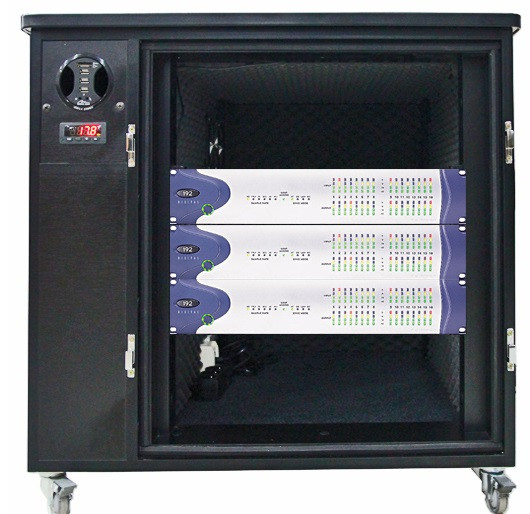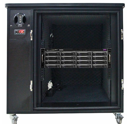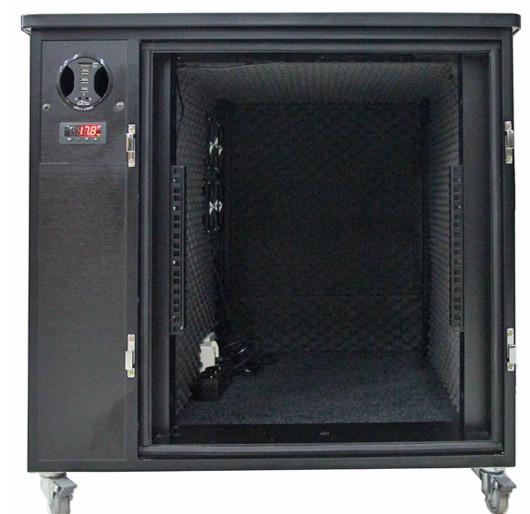 Ce box insonorisé en mélaminé permet de mieux isoler les équipements bruyants.