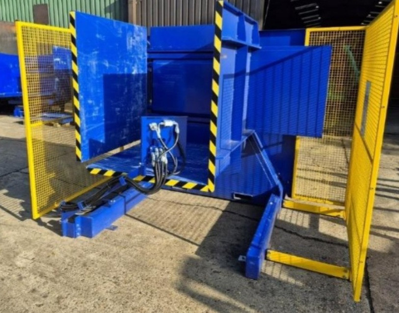 La machine est équipée de grilles hautes de 2 m, assurant la protection des opérateurs lors du retournement de charges lourdes ou fragiles.