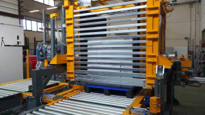 Le sysystème logistique de changement palette est équipé du système de centrage sonar. Il permet de centrer la marchandise au centre de la nouvelle palette tout en compensant la différence de taille des deux palettes si elles sont différentes. La sécurité du système est garantie par l’utilisation d’un périmètre de grillages métalliques et de photocellules homme pour le contrôle d’accès.