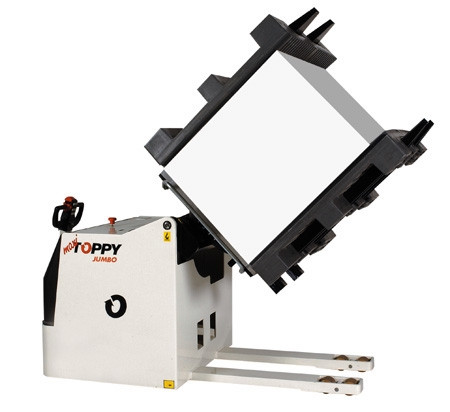 « Maxi Jumbo » est un retourneur de charge mobile électrique qui peut retourner et manipuler des produits sur palettes jusqu’à un poids maximum de 2000 kg.