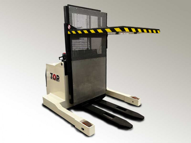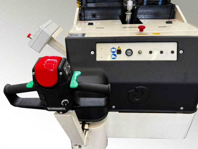 Ce retourneur de palette mobile est équipé de batteries au gel de dernière génération qui permettent une autonomie d'environ 8-10 heures. Cependant, il est possible d'installer des batteries plus grosses pour augmenter leur durée de vie. De plus, il est compatible avec l'accessoire « roll-on / roll-off » qui permet de changer la pile en quelques secondes pour un cycle de fonctionnement continu. Cette chambre forte à palettes peut également être utilisée pour déplacer des marchandises à l'intérieur de l'entrepôt. Sa base élargie rend la machine extrêmement polyvalente car elle lui permet de gérer tout type de palette dans l'entrepôt.