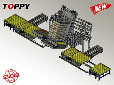 Le déplacer automatique de palette « L-Shape Inline APS » est un retourneur de palettes entièrement automatique qui permet un changement de palette très rapide, ayant inclus un système empileur/depileur avec robot.
