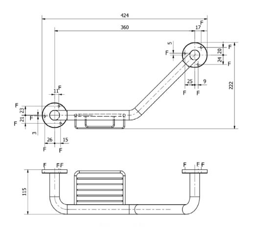 | Réf. TC :423785154 | Barre d'appui pour salle de bain 135° | Inox | Satiné | 222 x 424 x 115 | 0,7 | -
