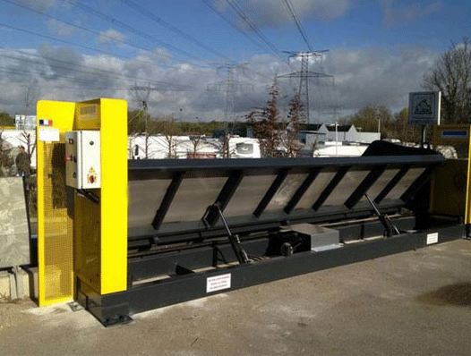 - Permet à la fois de " vider " dans la benne lorsque celle-ci est à quai, mais aussi de barrière lorsque le système est fermé