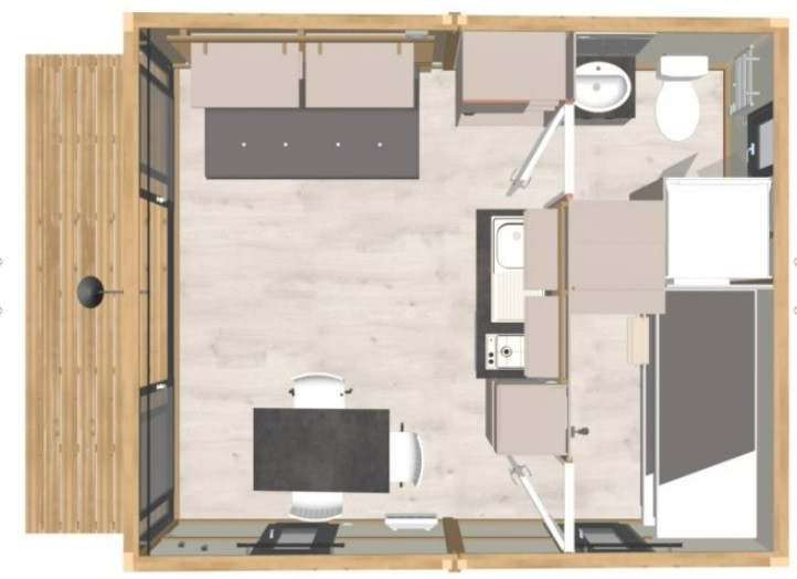 D'une superficie de 25 m², cette mini maison offre un espace fonctionnel et est entièrement équipée pour répondre aux besoins essentiels de ses occupants.