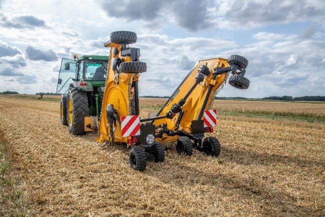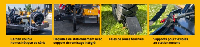 Il possède une flèche d'attelage à parallélogramme permettant de conserver le broyeur toujours parallèle au sol quel que soit la hauteur de coupe.