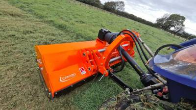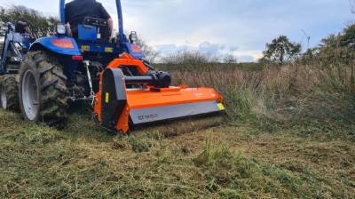 Compatible avec des tracteurs de 25 à 50 ch, il est équipé d'un déport latéral hydraulique pour faciliter le travail autour des obstacles et des bordures.