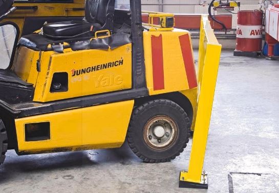 La barrière se sécurité industrielle absorbe les chocs il y a plusieurs poteaux.