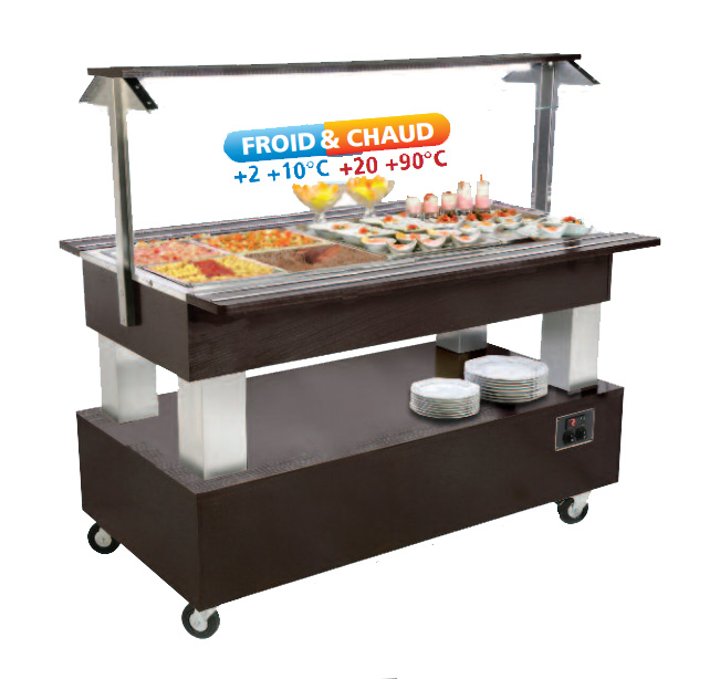 Il permet une utilisation en libre service et une présentation des plats froids et chauds.
