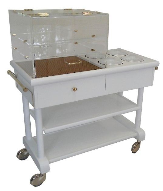 Ce guéridon pour fruits et fromages est équipé de 4 pots eutectiques froids.