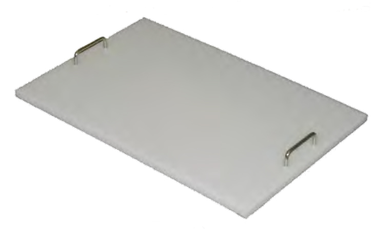 Fabrication Française Polyéthylène alimentaire blanc 2 poignées laiton Dimensions : 400 x 600 mm Epaisseur : 20 mm