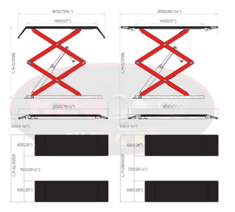Avec une capacité de levage de 3000 kg, répartie sur deux rampes dont la longueur varie de 1870 mm à 2050 mm, il est capable de prendre en charge une grande variété de véhicules.