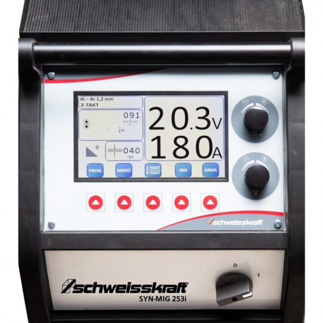Cette fonction unique calcule automatiquement la tension et la vitesse de défilement du fil en fonction du diamètre du fil, du matériau que vous travaillez et du gaz utilisé.