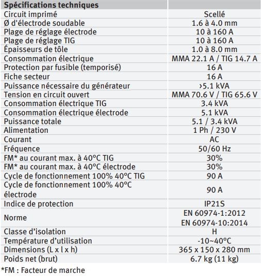 - Appareil équipé PFC (correction du facteur de puissance), VRD (réduction de la tension en fonctionnement à vide)