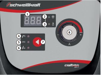 - 8 Potentiomètre du courant de soudage
