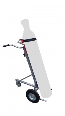 Il s'adapte pour différents diamètres de bouteilles grâce à son mât réglable, notamment pour déposer ou retirer une bouteille d'un poste à souder.