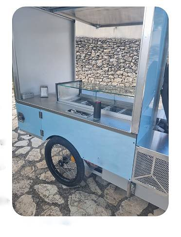 triporteur pour vente de glace en alu et inox est pensé pour vous accompagner sur les zones piétonnes, les centres-villes, les événements et les sites touristiques.
