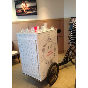 18/10/2023Chariot avec logo de la marque + noir + possibilité d"y mettre en avant des bouquets de fleurs