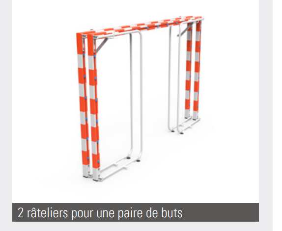 Notre râtelier de stockage pour paire de buts de handball est conçu pour ranger facilement vos buts à arceaux repliables tout en préservant l’espace et la sécurité de vos installations.