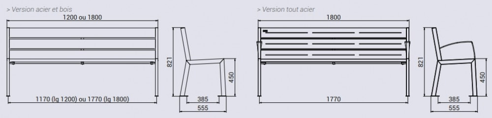 Ce banc public en tôle acier pliée est conçu pour l'aménagement de vos espaces de détente.