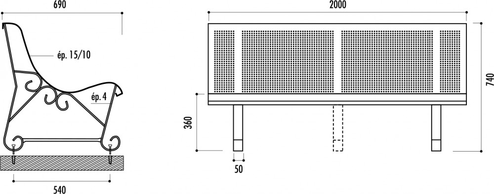 - Piètement en fer plat cintré