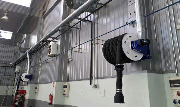 Cet enrouleur à ressort avec tuyau flexible est idéal pour les systèmes de levage ou de manutention.