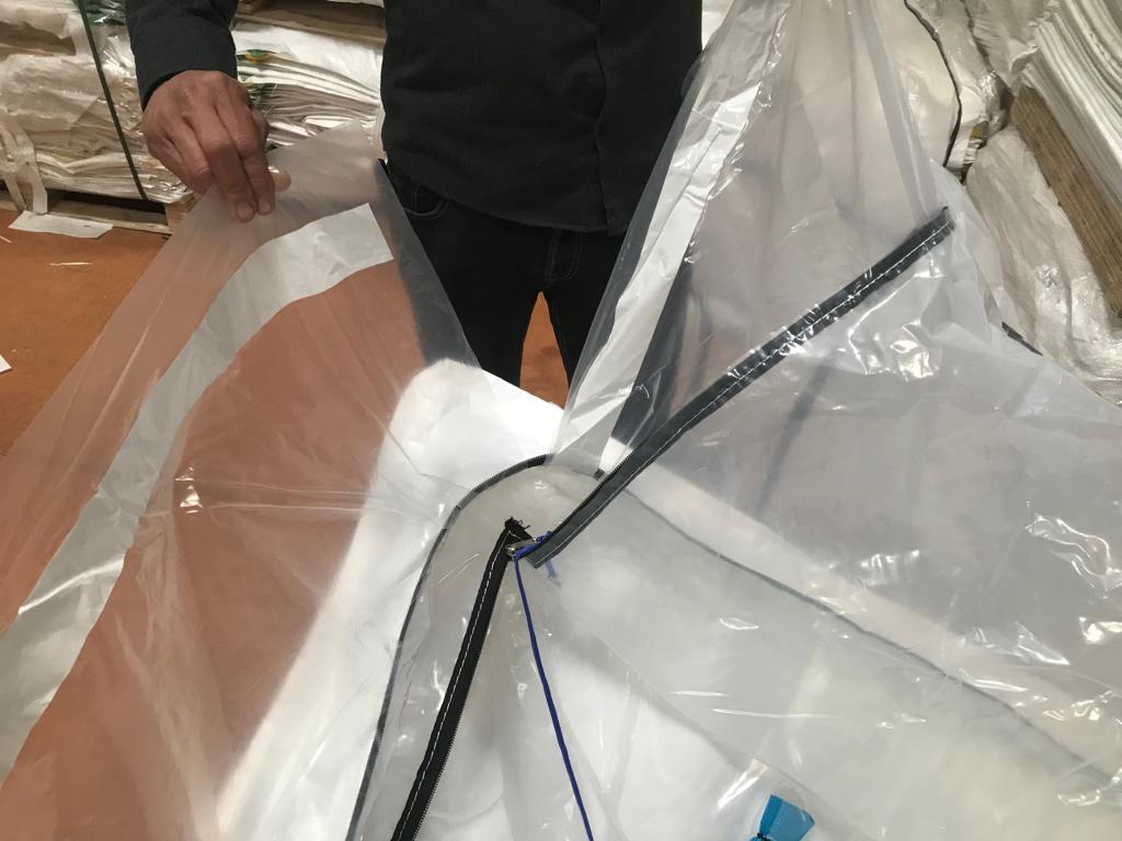 Ce sac Permet le confinement de déchets amiantes de façon 100% étanche grace à une double parois (Fim PE interne + film PP tissé externe) fermée par double ZIP renforcé.