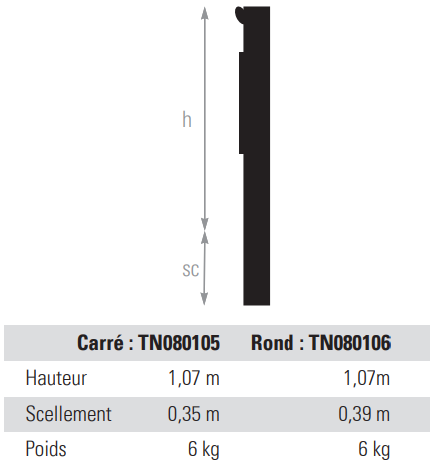 Deux sections au choix : 80 x 80 mm ou Ø 90 mm.