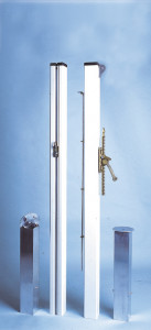 Disponibles en section carrée 80 x 80 mm ou ronde Ø 90 mm, ils se scellent solidement sur 35 cm pour une stabilité parfaite sur tous types de sols sportifs.