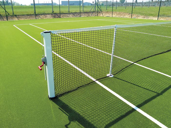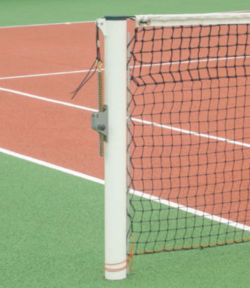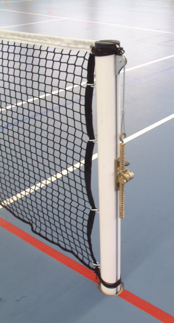 Les poteaux de tennis avec treuil à crémaillère garantissent un réglage précis et constant de la tension du filet.