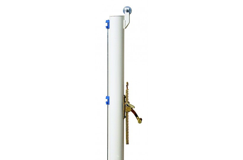 - Tension du filet rectiligne par treuil à crémaillère, maintien des filets le long des poteaux par tiges coulissantes