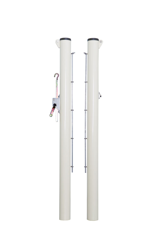 Tous les poteaux sont livrés avec des barres de cadrage pour la fixation du filet. (Ce sont les barres verticales sur la hauteur du poteau).