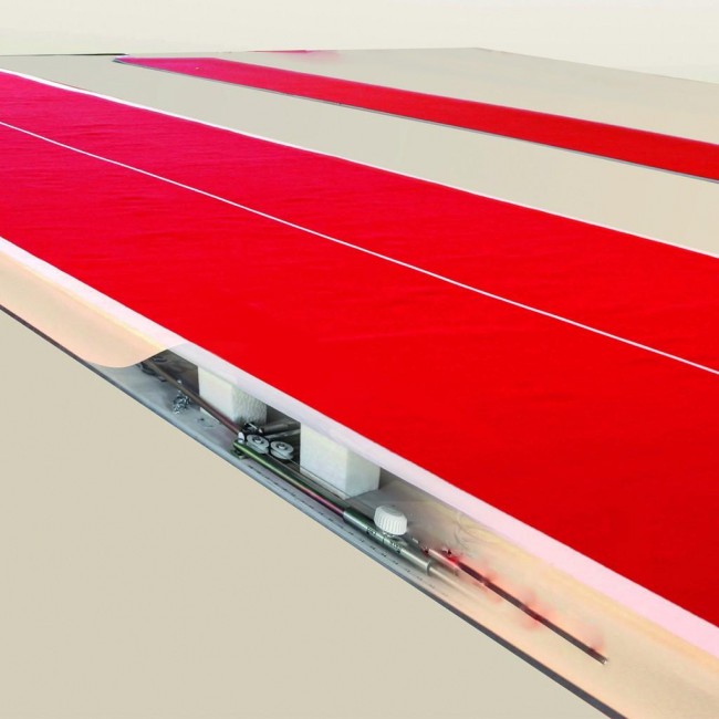 Chaque plaque possède un réglage individuel en élasticité, simple et rapide, qui permet de moduler le rebond sur toute la longueur de 6 m de piste.
