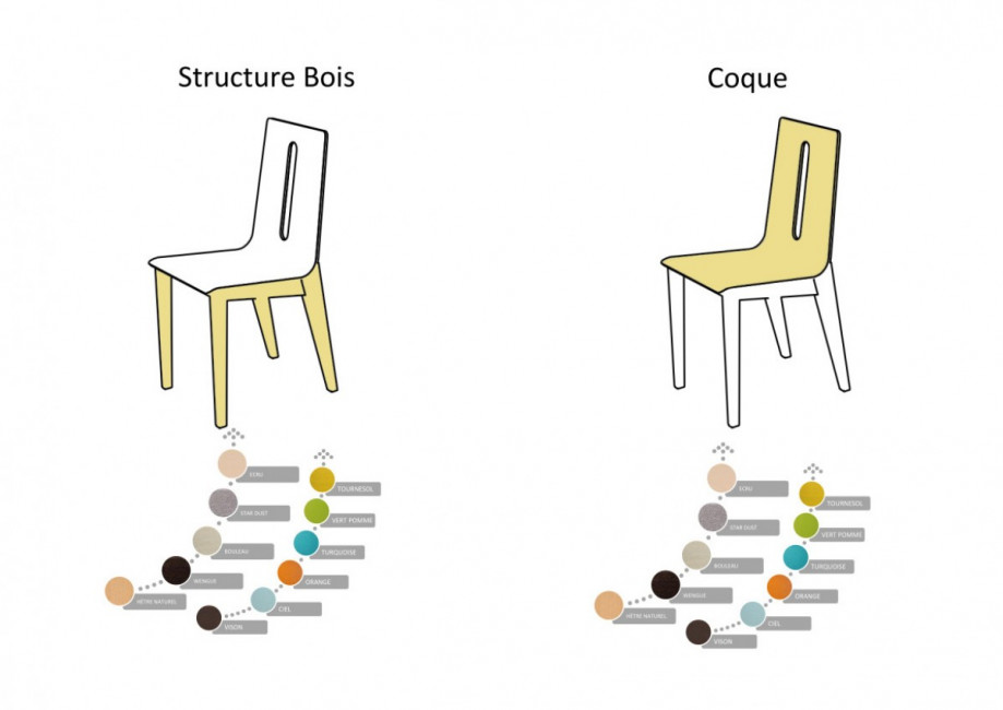 - L’assise et le dossier sont en contreplaqué moulé d'épaisseur 10 mm. Placet garni
