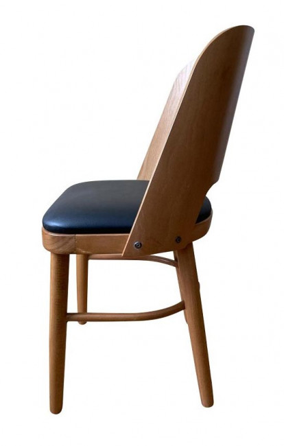Chaise en bois de hêtre chêne miel , avec assise rembourrée, revêtue de vinyle noir