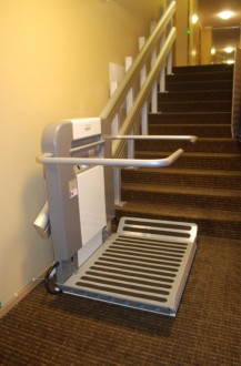 J"envisage une installation dans un appartement en co-propriété au premier étage escalier droit avec fauteuil roulant. Qu"elle serait votre proposition?