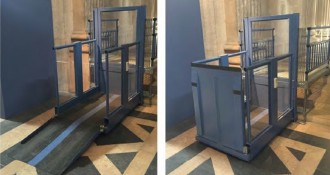 Monte handicapé plateforme verticale, une solution dedéplacement des personnes à mobilitéréduite conçue pour franchir des différences de hauteurs allant jusqu’à 1300 mm.