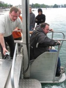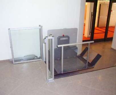 VED600 avec portillon automatique vitré et garde corps-latéral vitré. (un garde corps lisse a été posé le long du palier par la suite par un menuisier pour garantir la sécurité des personnes