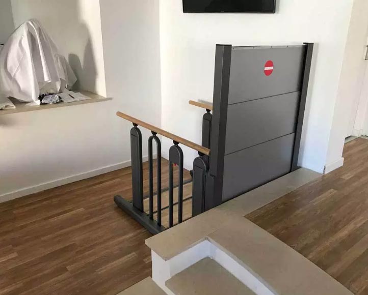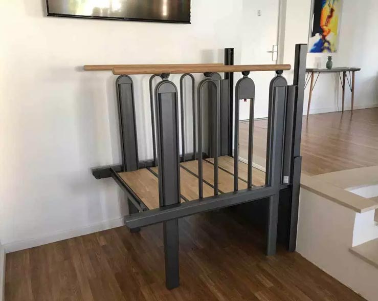 25/08/2022Plateforme élévatrice convertible pour escalier extérieur de 0.90M de hauteur par 1.40M de longueur et 0.9M de largeur.